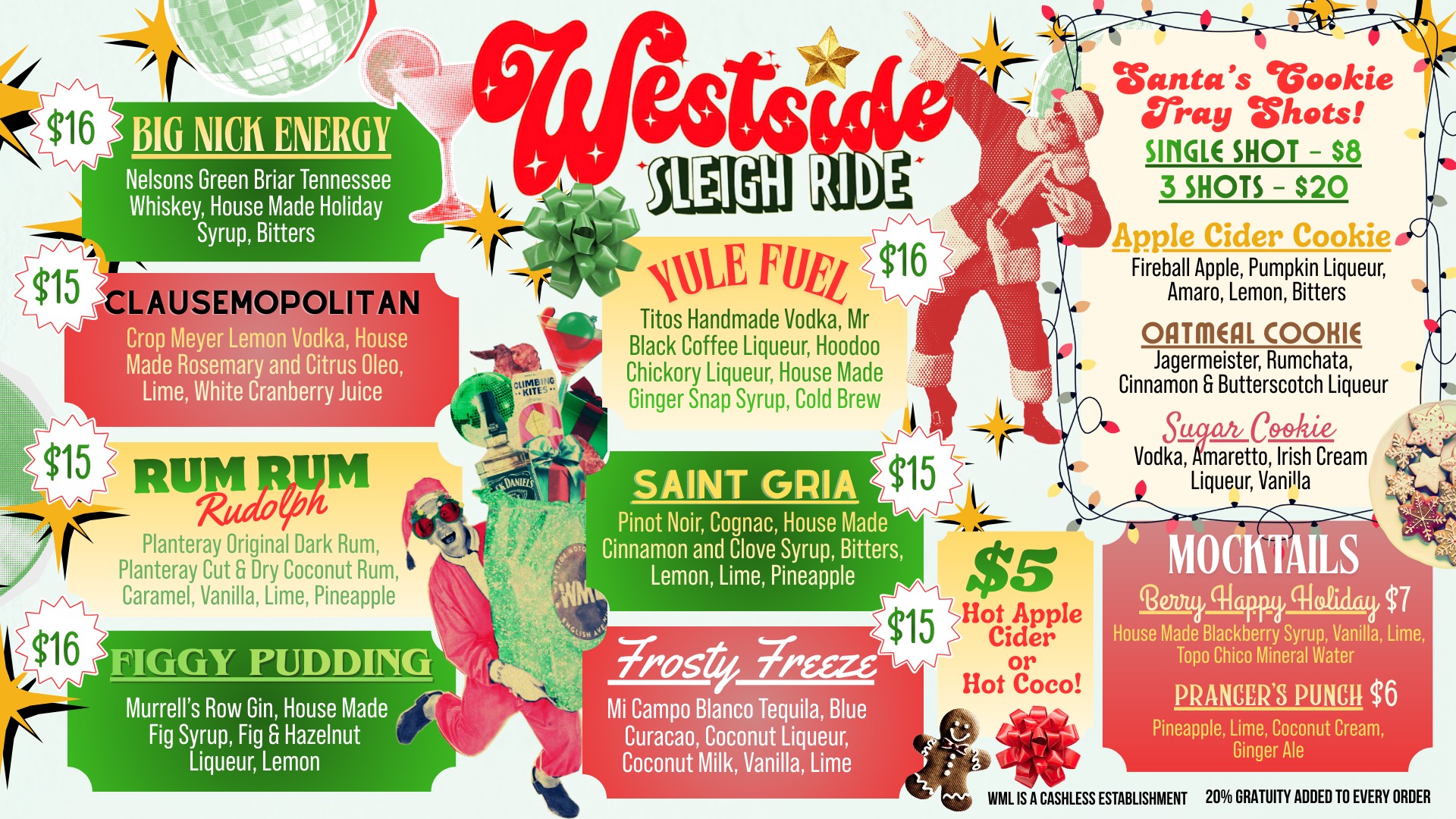 Expect seasonal flavors like cranberry, cinnamon, rosemary, apple, and citrus paired with premium liquors and handcrafted syrups. Each drink is designed to complement the festive energy of New Year’s Eve while staying true to WML’s signature style, approachable, elevated, and unforgettable. For those who enjoy trying something new, New Year’s Eve is the perfect opportunity to explore creative cocktails you won’t find at just any westside Atlanta bar.